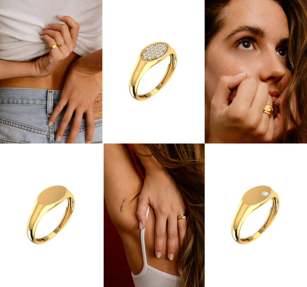 Made with brilliant cut lab grown diamonds, the new collection of signet-shaped rings bring a contemporary and maxi style to match any look.